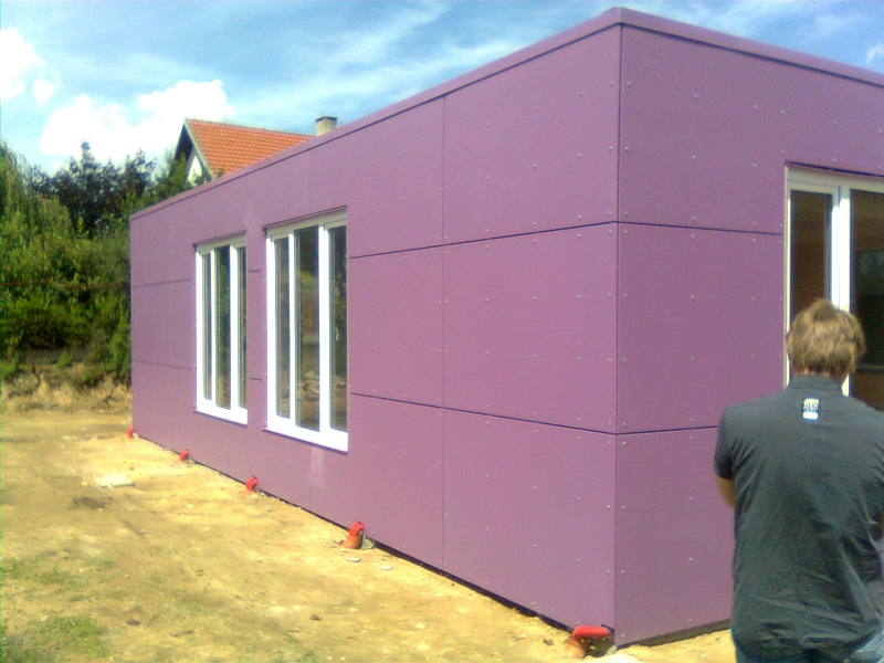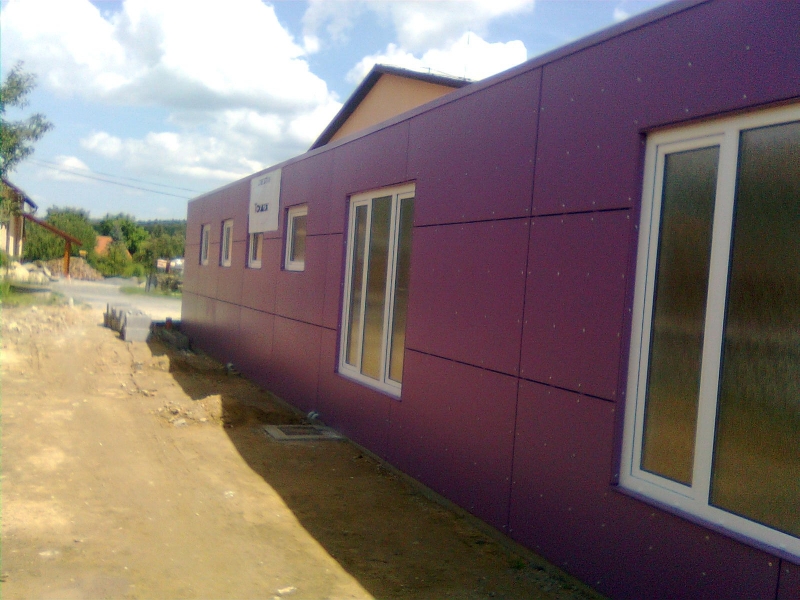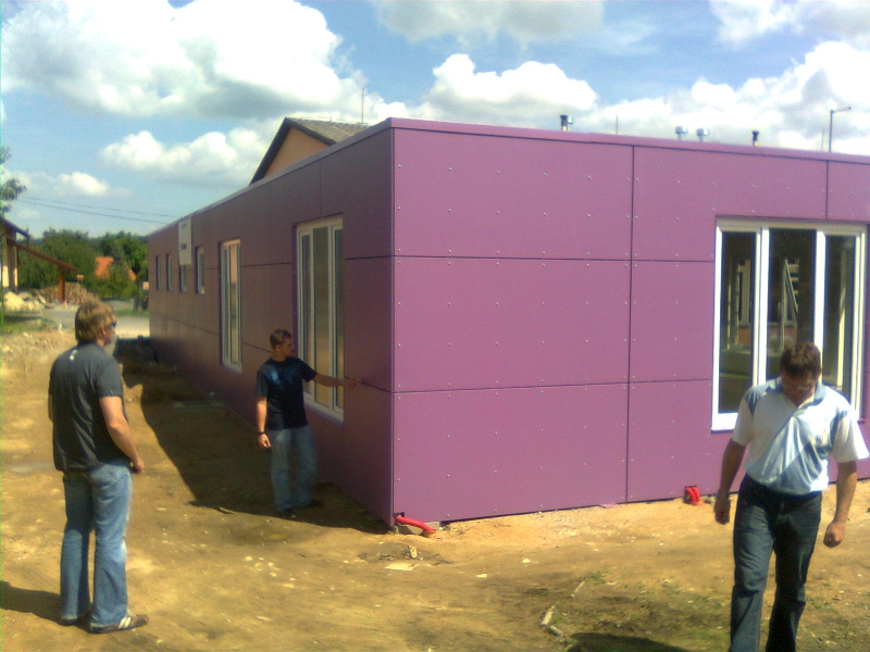 Opláštění modulové stavby z montovaných kontejnerů fy TOUAX.