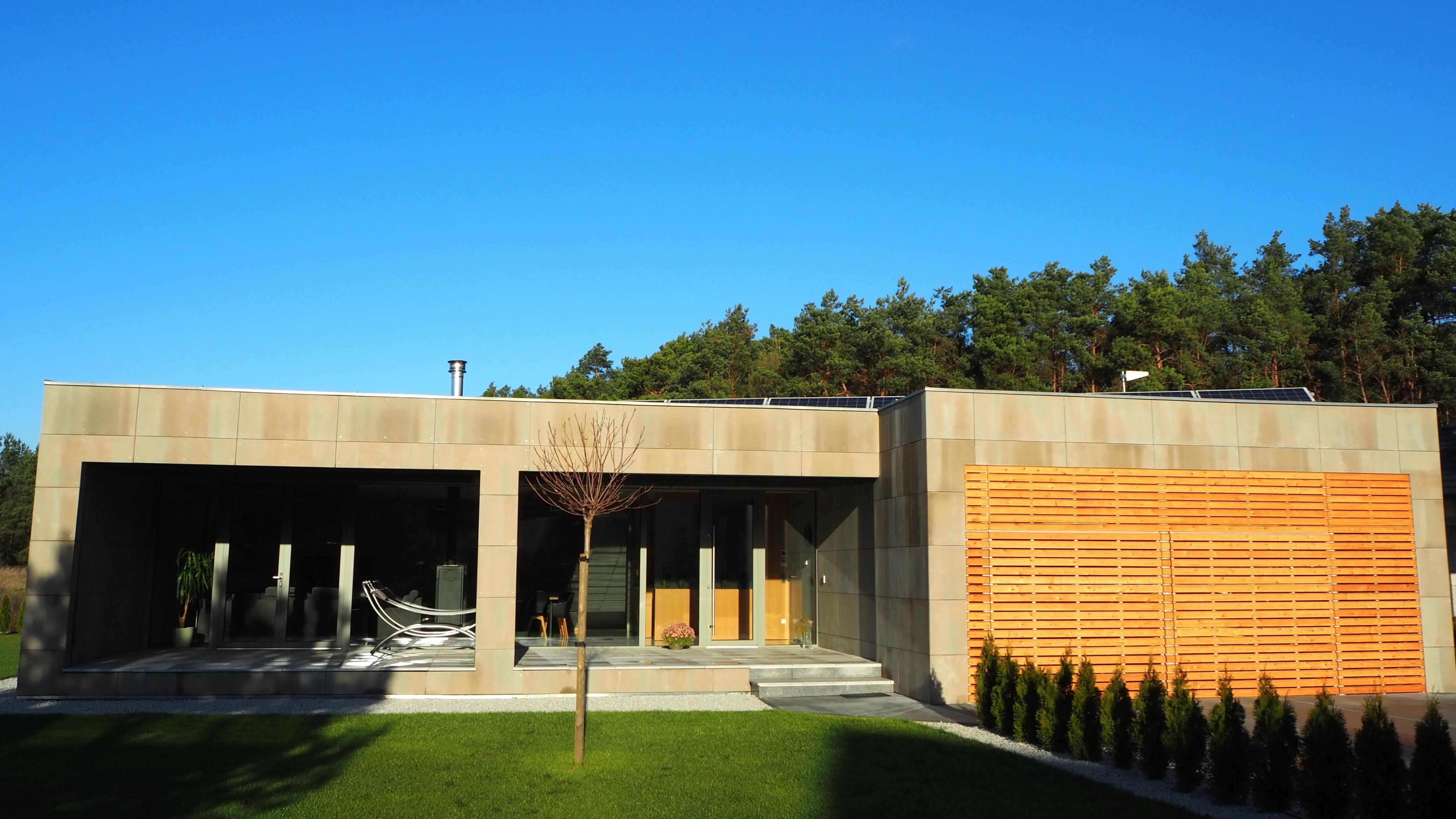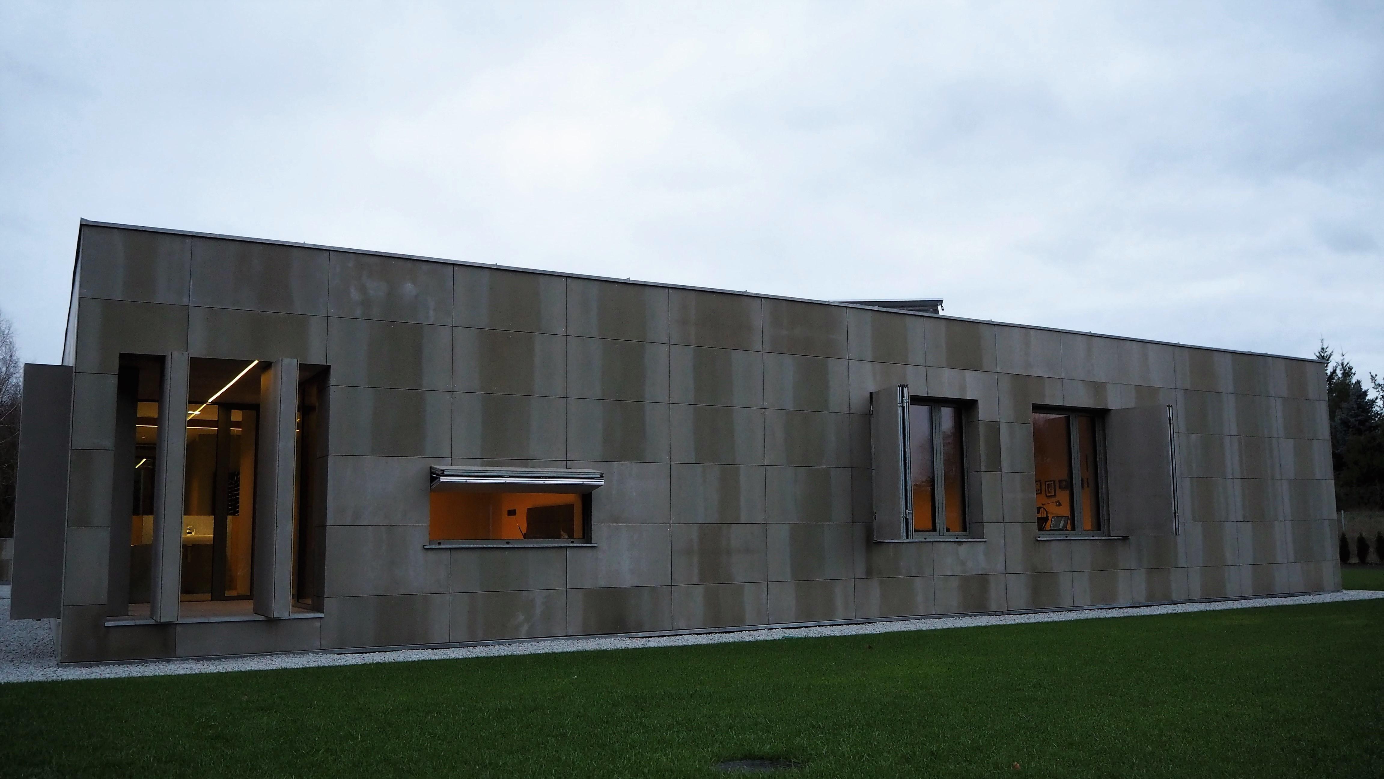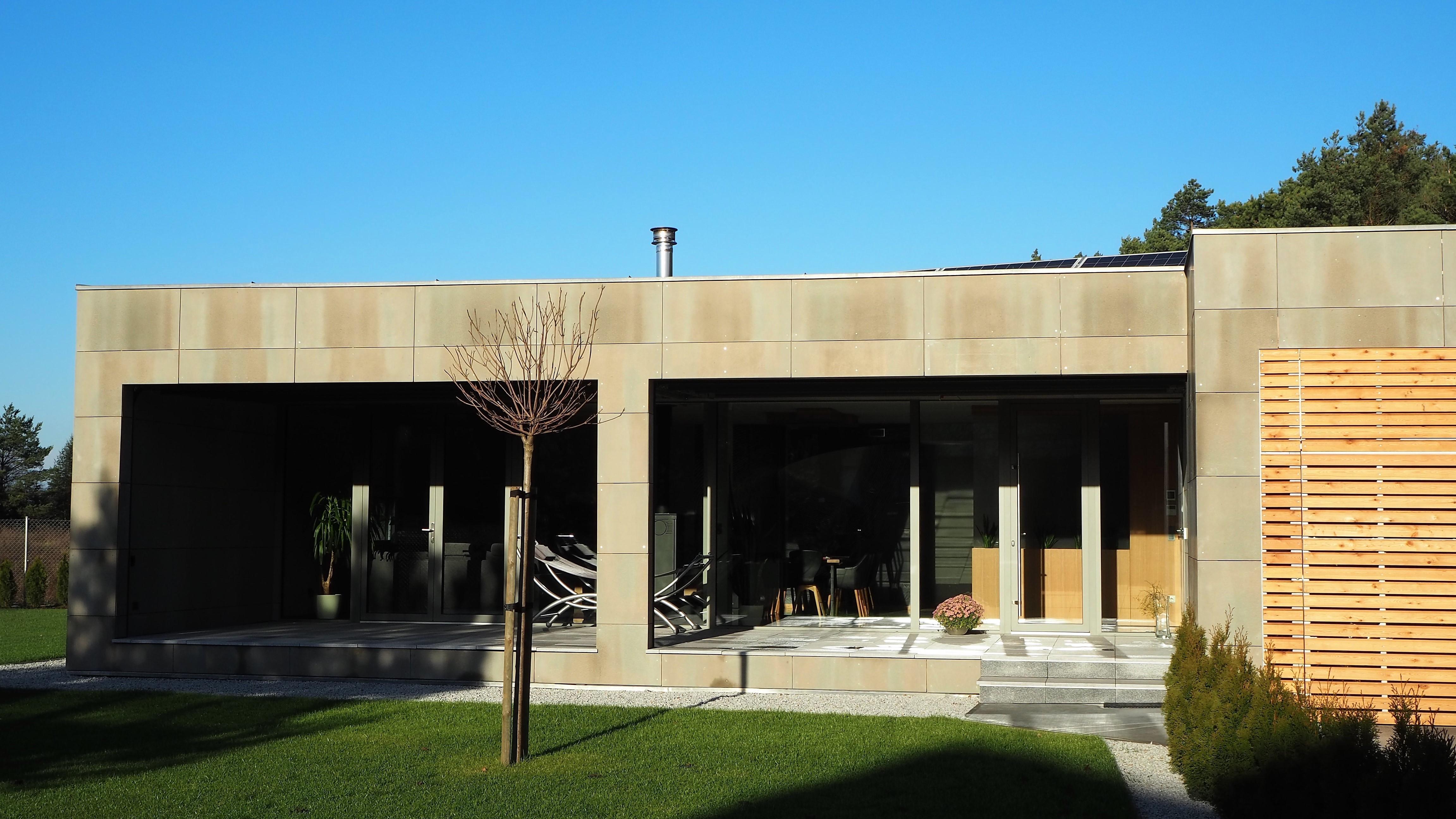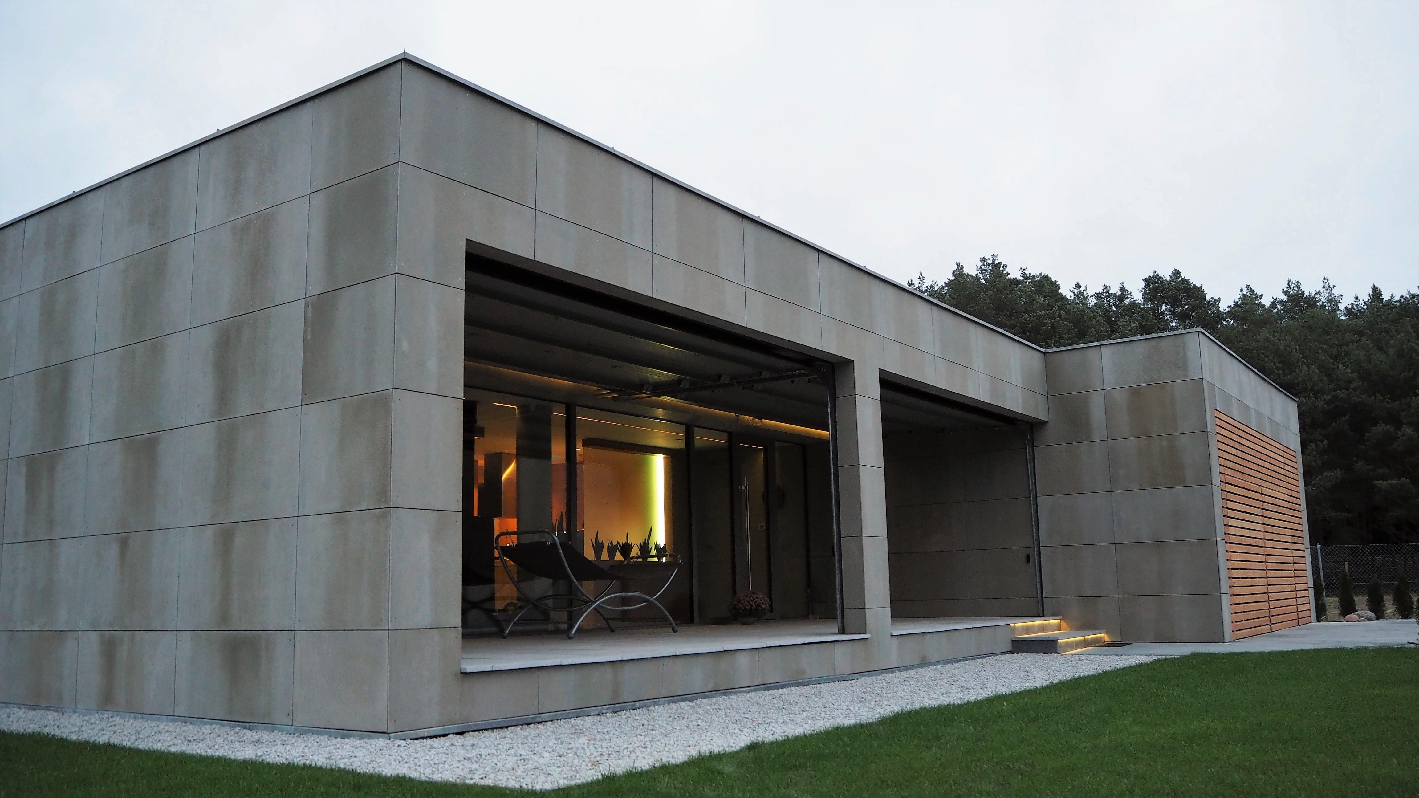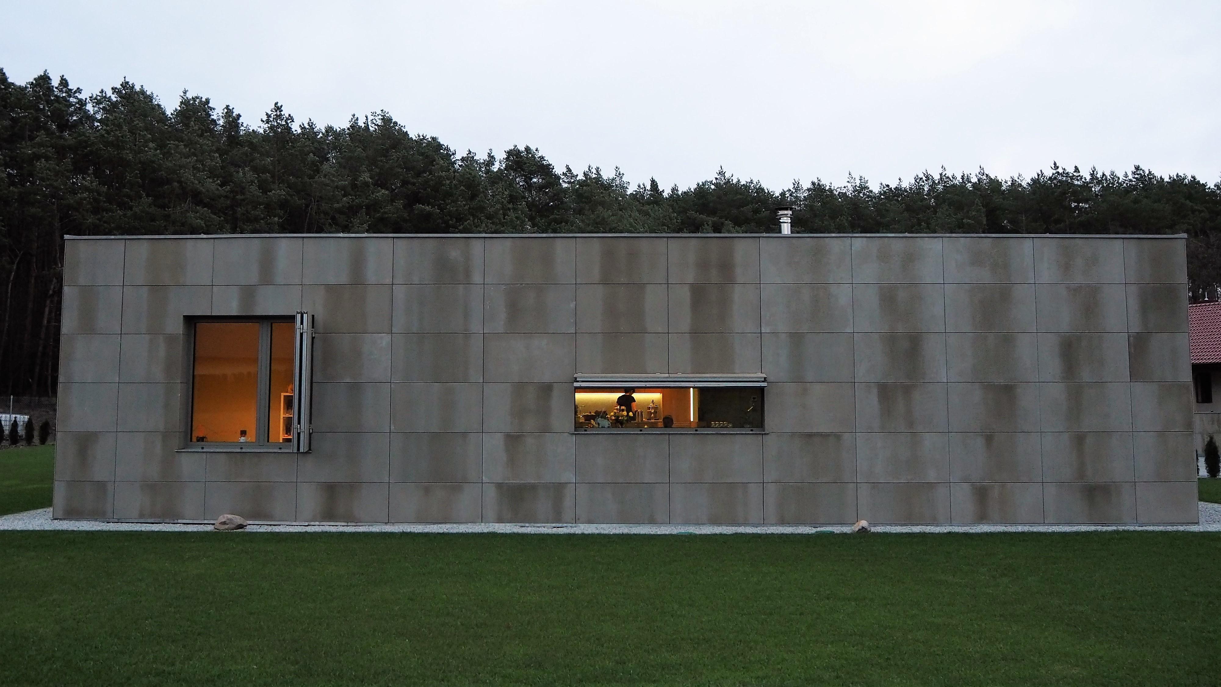 Te niedoskonałości estetyczne naturalnego materiału są bardzo dobrze widoczne na elewacji futurystycznego budynku architekta Roberta Kaliszaka, a jednak nic nie traca na urodzie i nowoczesnym wyglądzie jego domu
