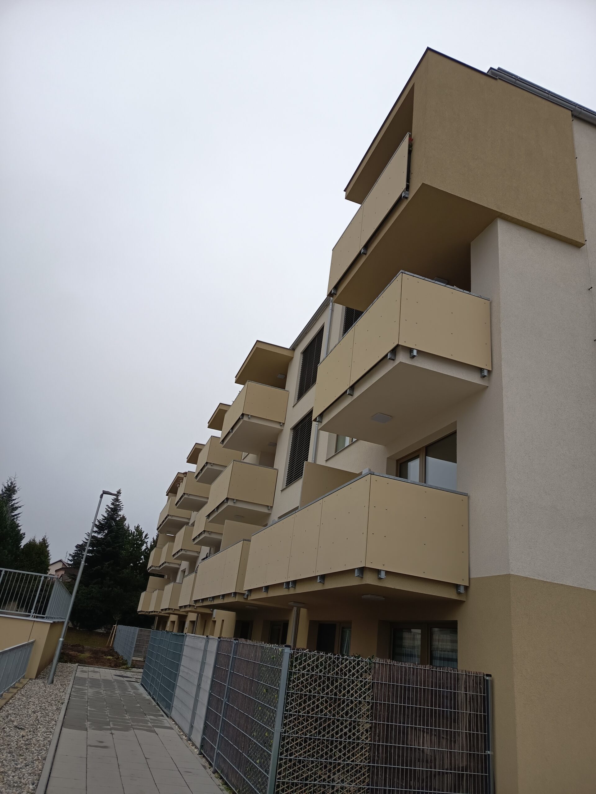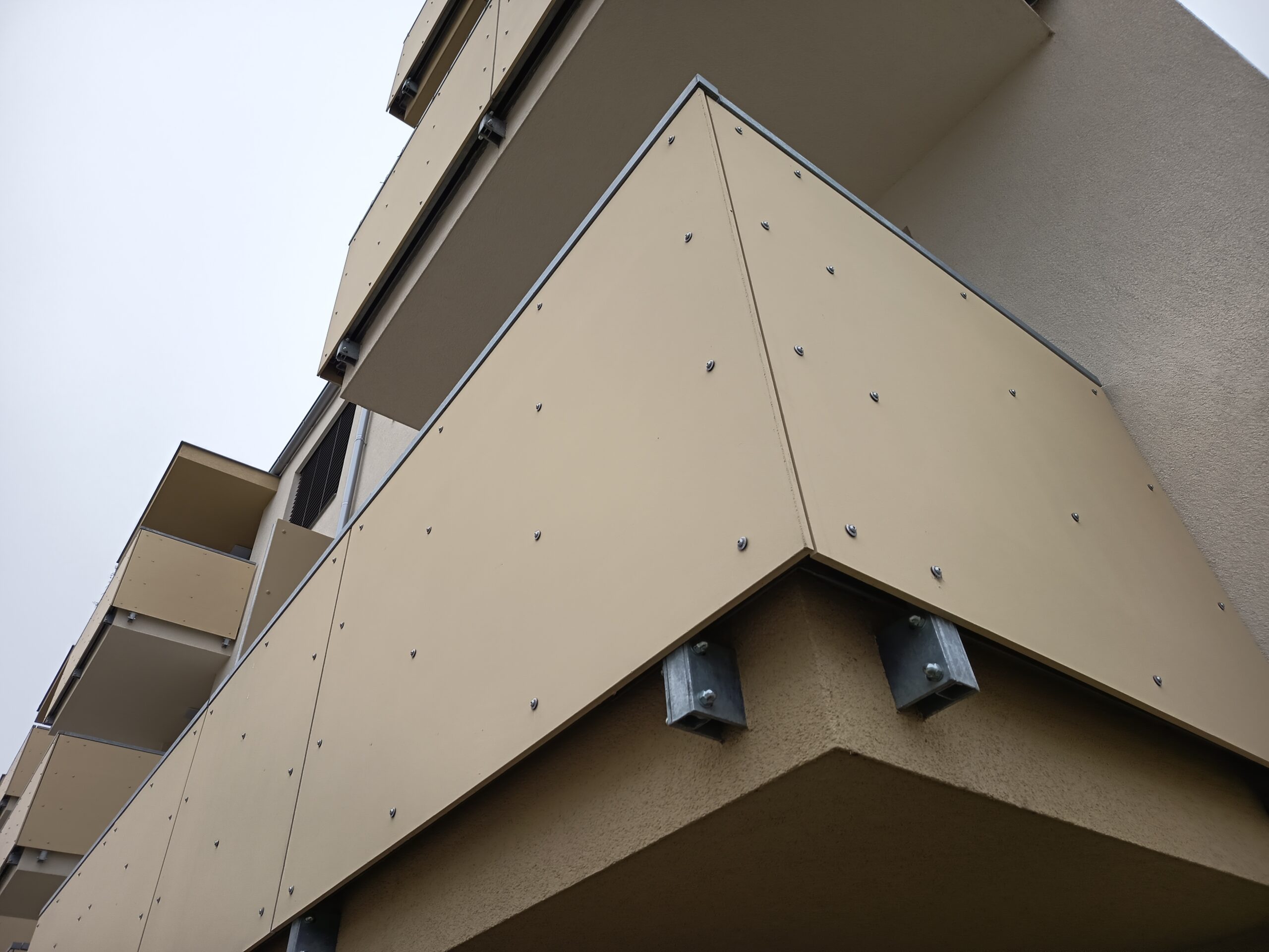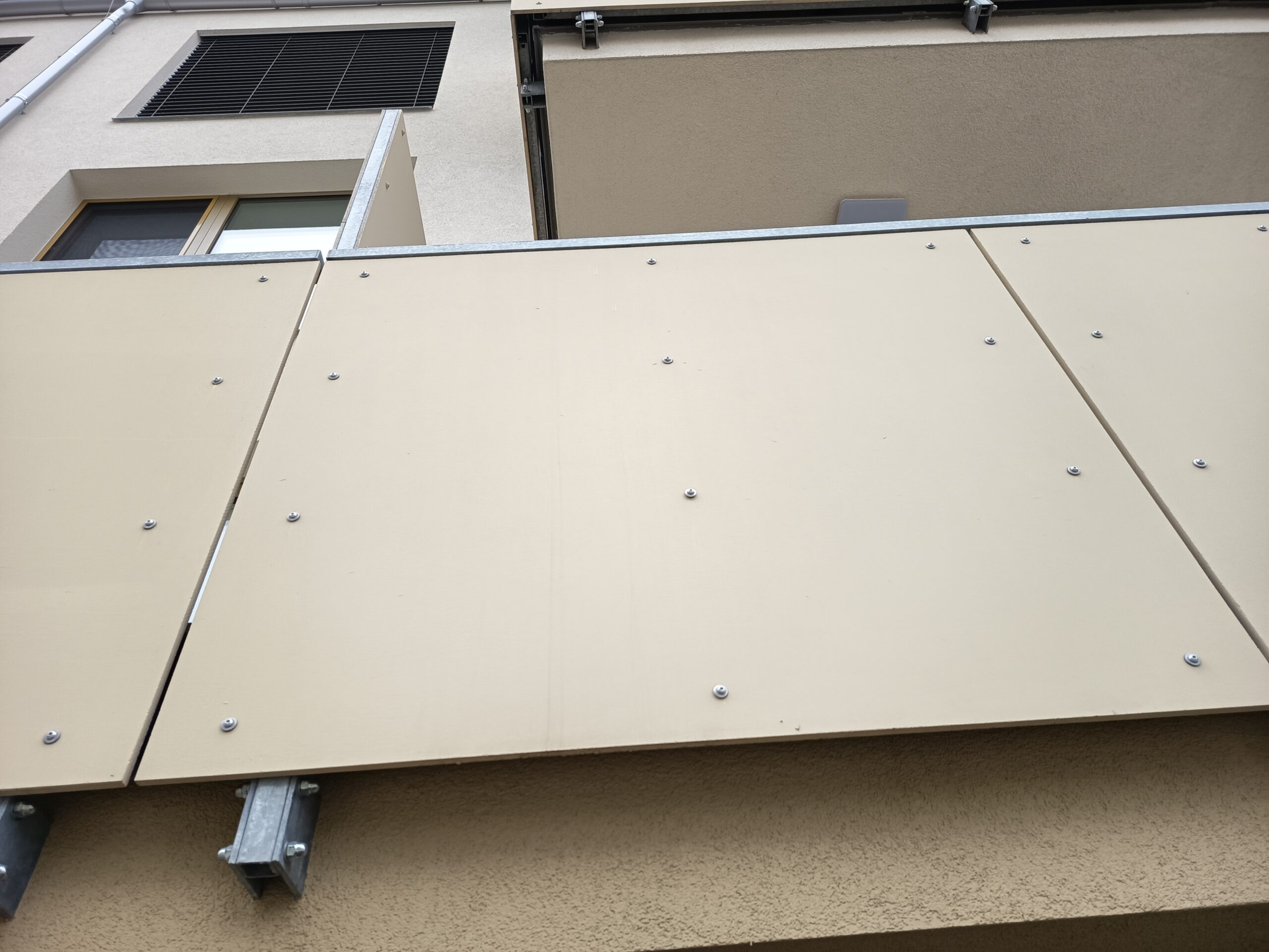 Výplně zánradlí z desek CETRIS Basic tl. 14 mm, před montáží opatřené povrchovou úpravou.