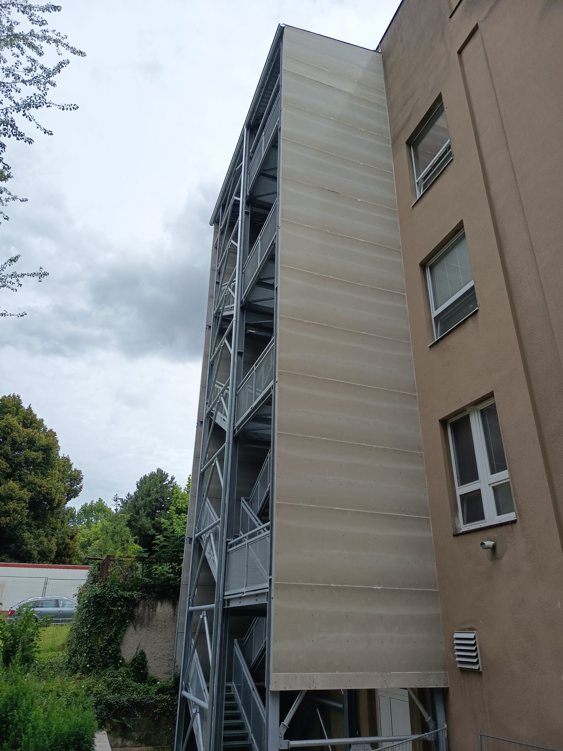 Venkovní obklad a protipožární obklad z desek CETRIS Basic. Realizace fy STAKO Hradec Králové.