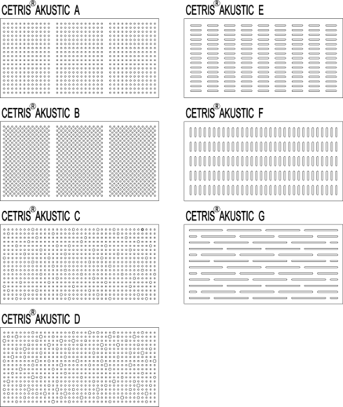 Cementořísková deska CETRIS® AKUSTIC FINISH vzniká opracováním (s vyvrtanými / vyfrézovanými otvory) základního typu desky CETRIS® BASIC. Základní rozměr desky je 1 250 x 625 mm, tloušťka 8 a 10 mm. Povrch desky je hladký, opatřený povrchovou úpravou – základním podnátěrem a finální povrchovou úpravou dle vzorníku RAL, NCS.Přehled dodávaných barevných odstínů včetně rozdělení do cenových skupin (odstín A – standardní typ, odstín B – nestandardní typ) najdete zde.