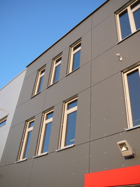 CETRIS® FINISH je cementotřísková deska tl. 10 – 16 mm s hladkým povrchem opatřená základním podnátěrem a finální povrchovou barvou v barvených odstínech dle vzorkovnice RAL, NCS.
