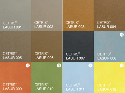 je cementotřísková deska s hladkým povrchem opatřená základním podnátěrem a finálním lazurovacím lakem